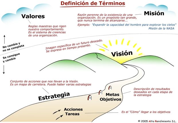 Describe los resultados que la institución desea alcanzar en un tiempo determinado, hacia donde deben dirigirse los esfuerzos y los recursos.